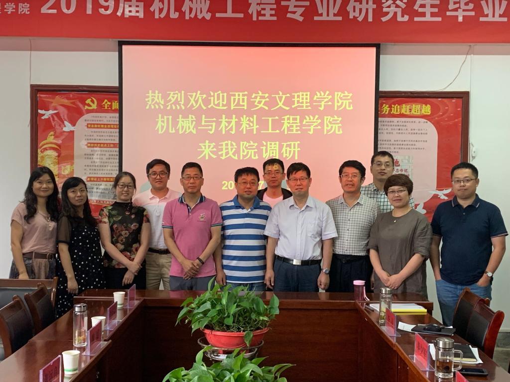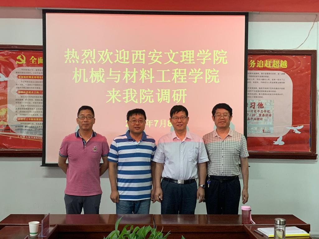 7月8日上午,西安文理学院机械与材料工程学院院长张运良一行7人来我院进行交流考察。两院在石鼓校区机械学院会议室召开座谈会,会议由王参军院长主持。