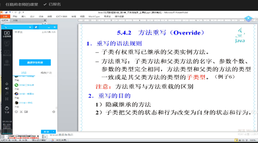 根据学院安排,今天上午听计算机学院任晓莉老师的课程,任老师利用腾讯课堂直播授课,课堂中先讲述Why—为什么要学习,第二步讲解相关知识点,在这个过程中,利用真实的例子给学生演示在Java编程中的应用,同时利用选择题或者连麦的形式对学生的掌握情况进行了解,课堂授课效果良好,学生基本掌握了知识点及其运用,结合到自己的课堂,有以下几点向任老师学习: